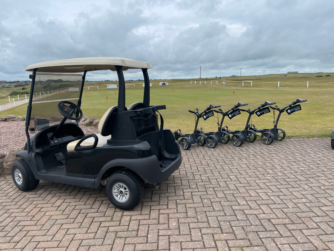 Peterhead GC have 2 x Sit on Buggies, M5 GPS Electric Trollies and Push Trollies for Hire